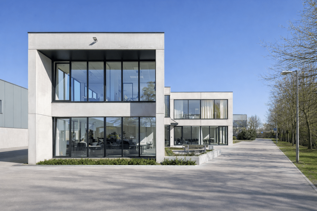 Het nieuwe gebouw wordt geflankeerd door twee authentieke boogloodsen aan de rechterkant. Net zoals het voorliggende gebouw met sheddak bewaart het de charme van de historische site. De hoogte van de nieuwe structuur en het beton als hoofdmateriaal zijn dan weer een knipoog naar de hoge betonnen toren die vroeger centraal op de site stond. Nickolas Vulsteke licht verder toe: “De vele kolommen lieten we achterwege. We kozen voor een eigentijdse vakwerkstructuur, met veel bewegingsvrijheid binnenin. Om de site operationeel te houden tijdens de werken, zetten we sterk in op minimale hinder. Een kwestie van planning, afspraken en specialistenwerk.”